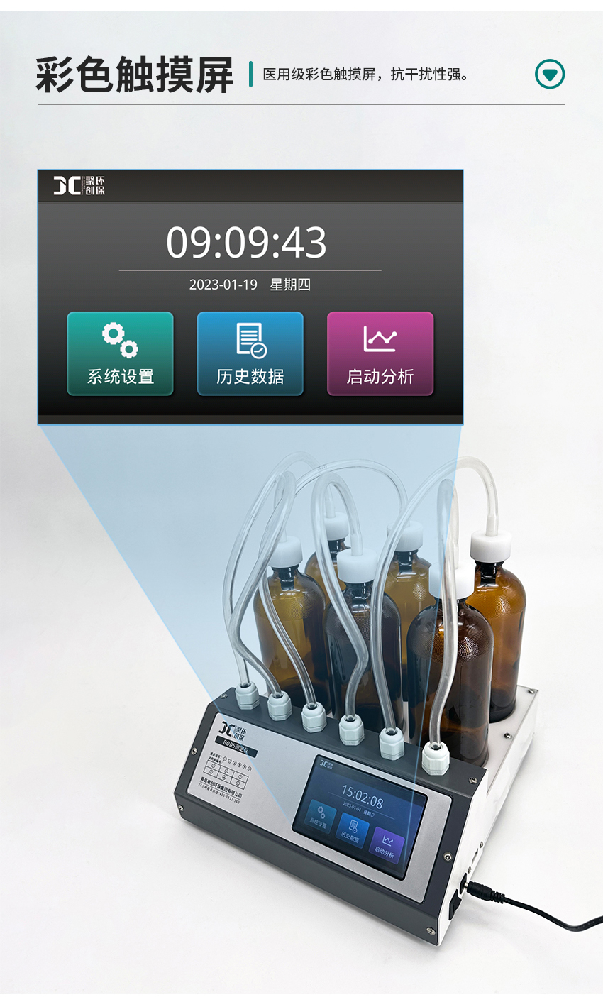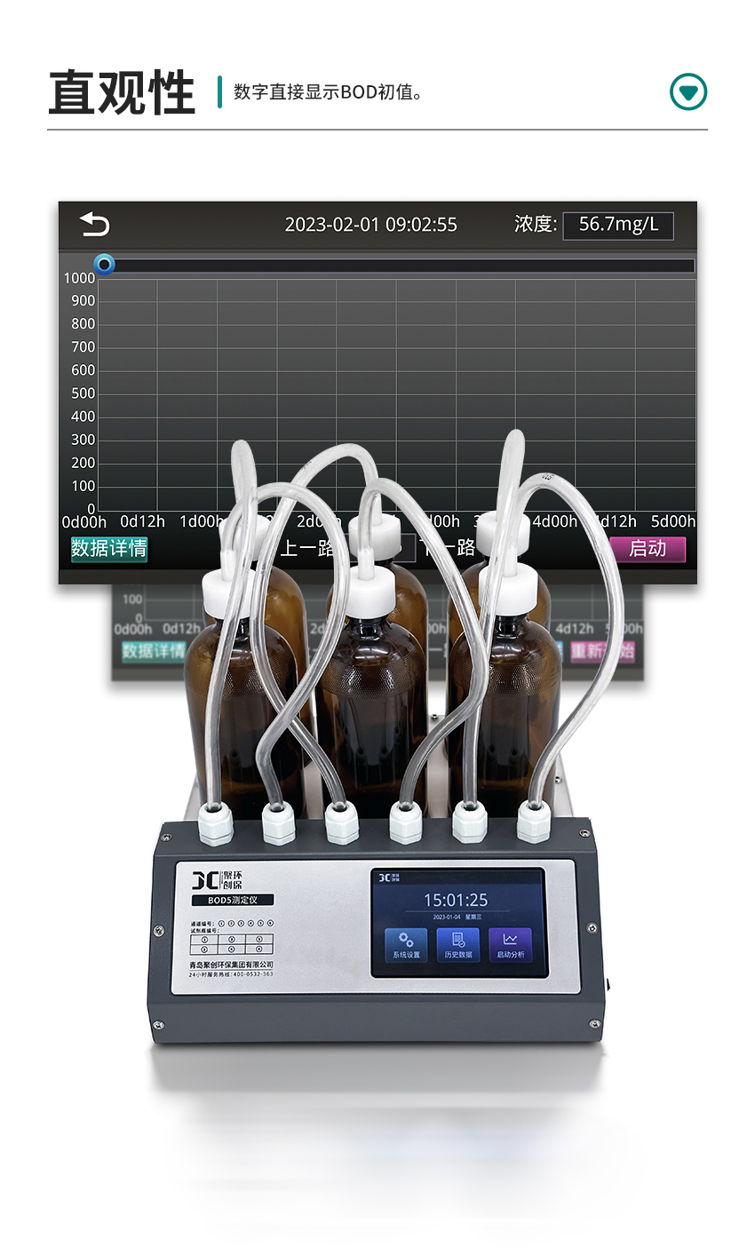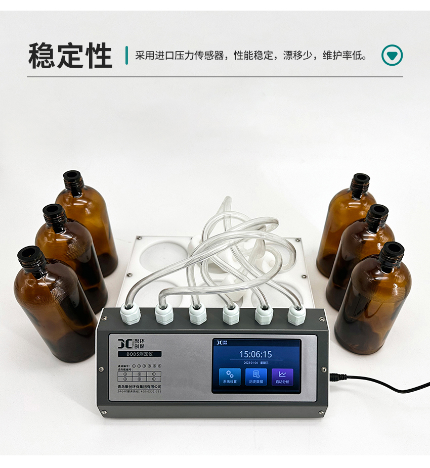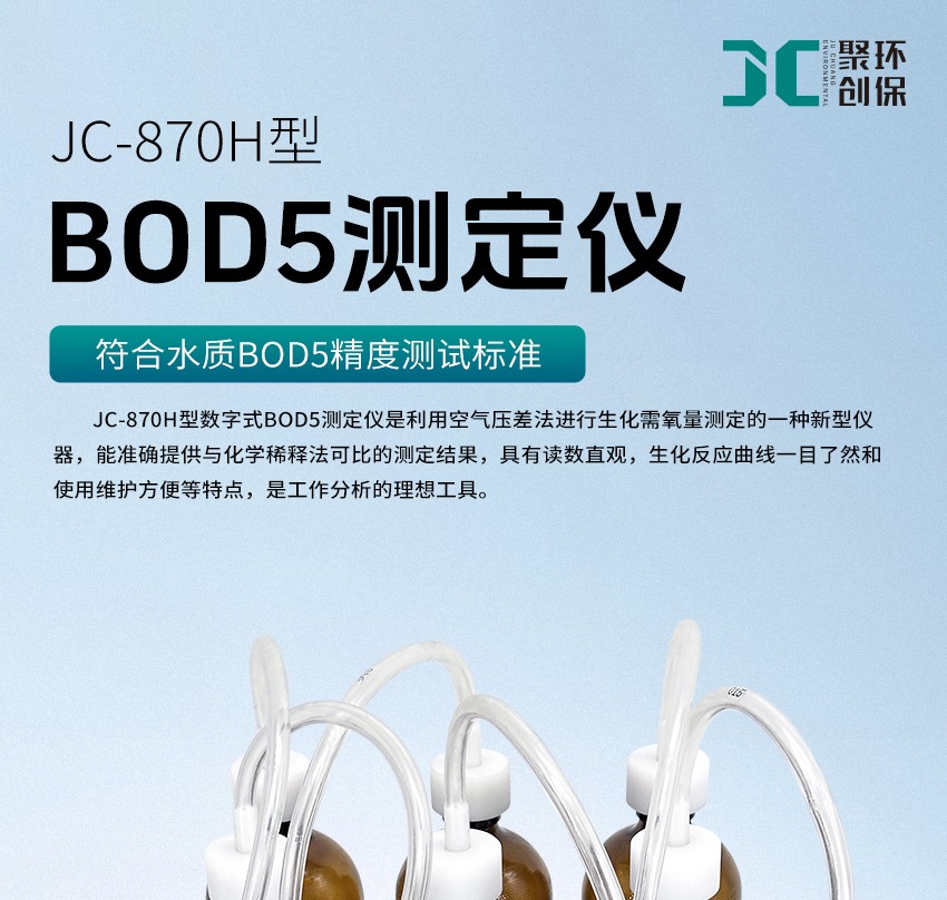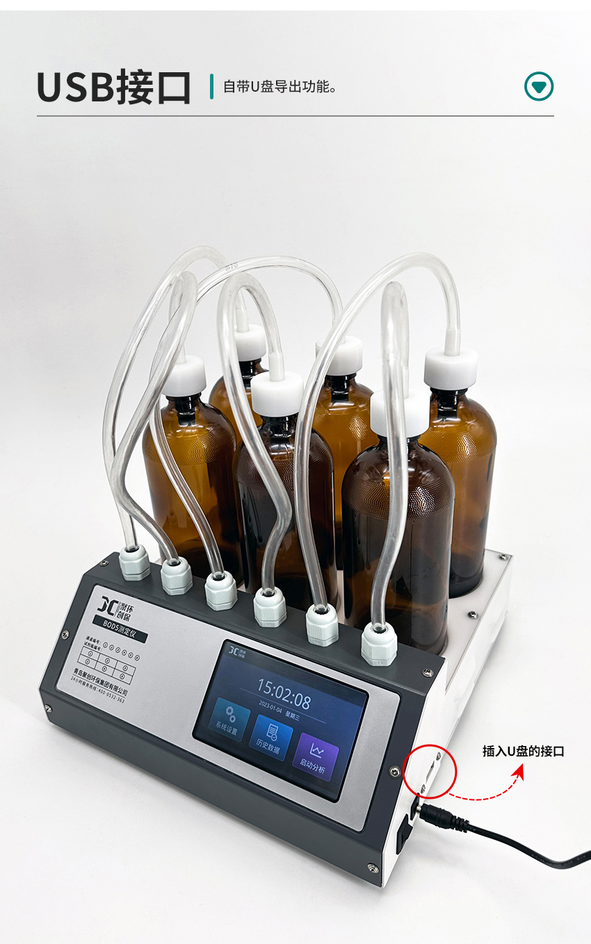JC-870H型數(shù)字式BOD5測(cè)定儀是利用空氣壓差法進(jìn)行生化需氧量測(cè)定的一種新型儀器,能準(zhǔn)確提供與化學(xué)稀釋法可比的測(cè)定結(jié)果,具有讀數(shù)直觀,生化反應(yīng)曲線一目了然和使用維護(hù)方便等特點(diǎn),是工作分析的理想工具。