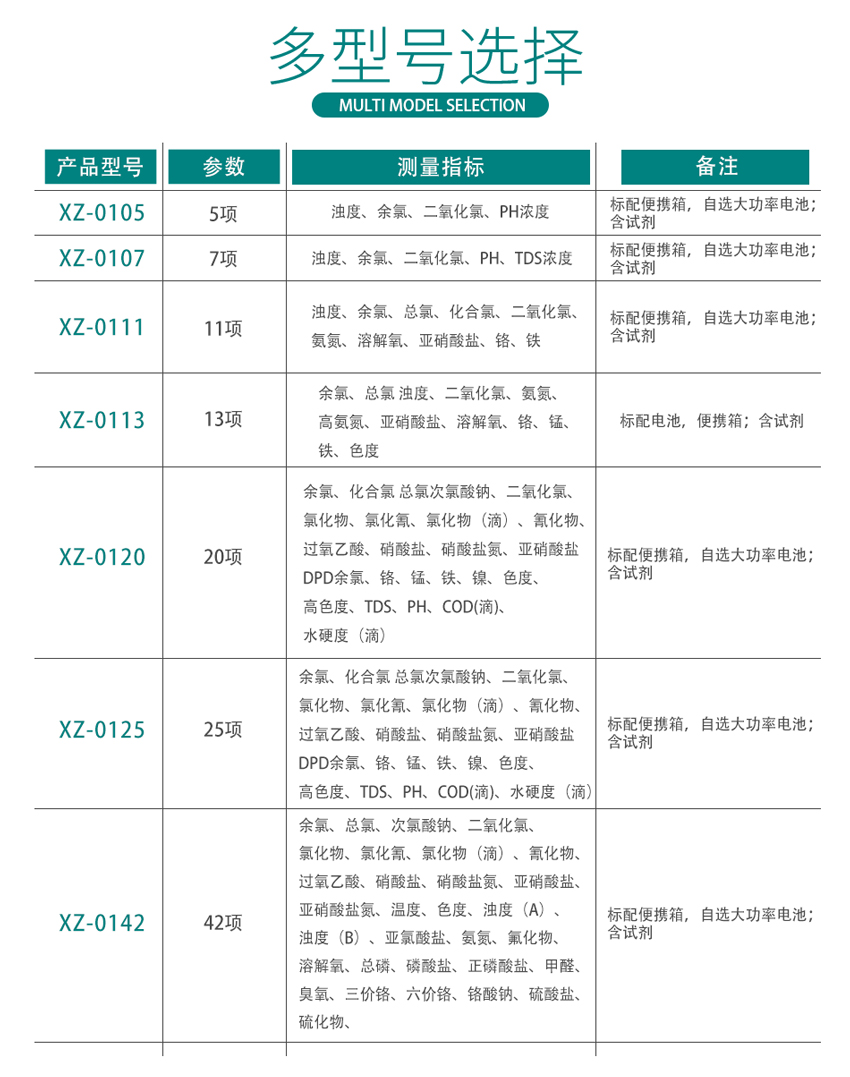 有5參數、7參數、11參數、25參數、42參數、65參數等多參數檢測儀,客戶可以在65項中選擇自己所需要測得參數后,再去選擇相對應的多參數儀器。