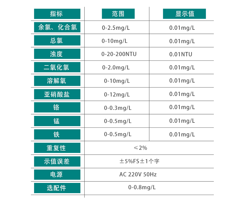 XZ-0111水質分析儀適用于大、中、小型水廠及工礦企業、游泳池、生活或工業用水的濁度、余氯、總氯、化合氯、二氧化氯、氨氮、溶解氧、亞硝酸鹽、鉻、鐵、錳濃度檢測,以便使檢測的水達到規定的水質標準。