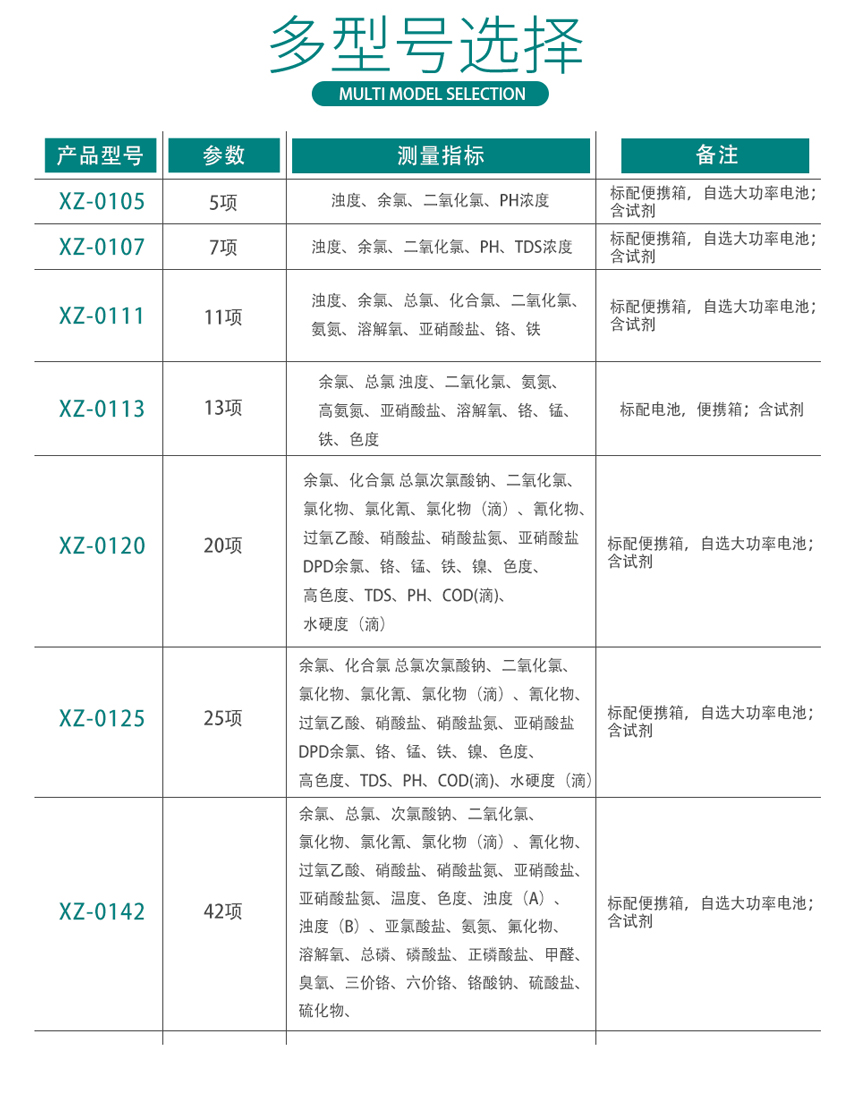 有5參數、7參數、11參數、25參數、42參數、65參數等多參數檢測儀,客戶可以在65項中選擇自己所需要測得參數后,再去選擇相對應的多參數儀器。