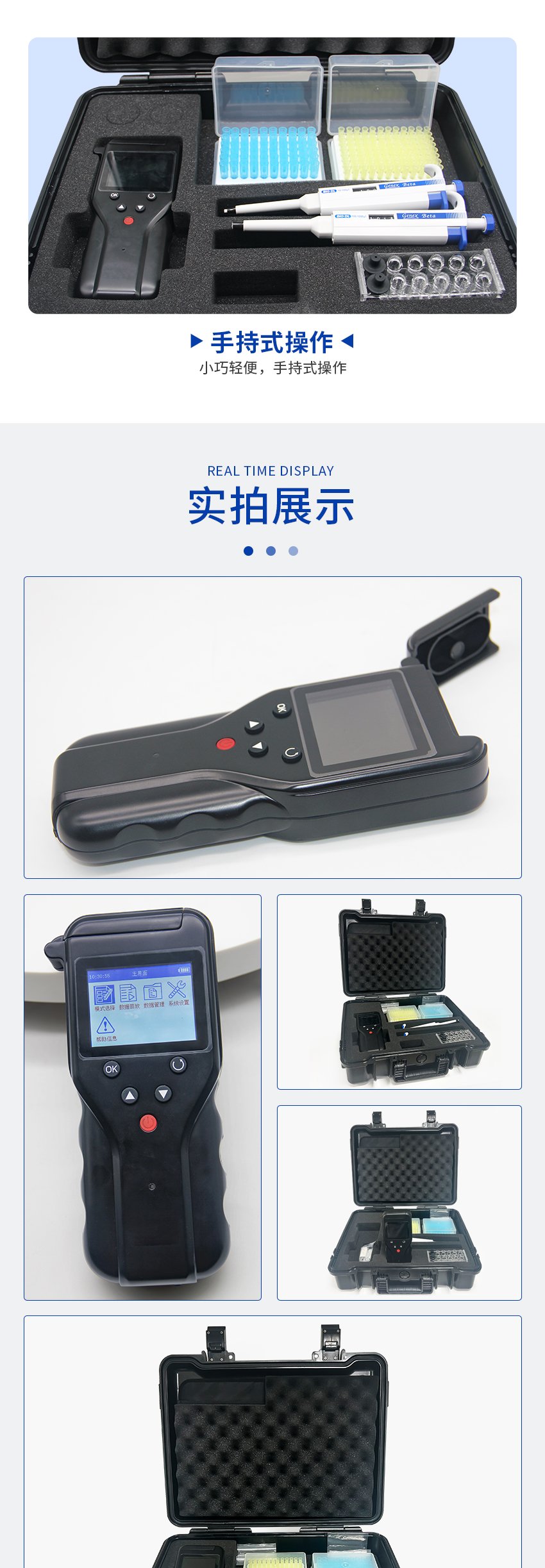 測(cè)試專用試管、移液槍、試管架、標(biāo)配試劑盒、便攜箱