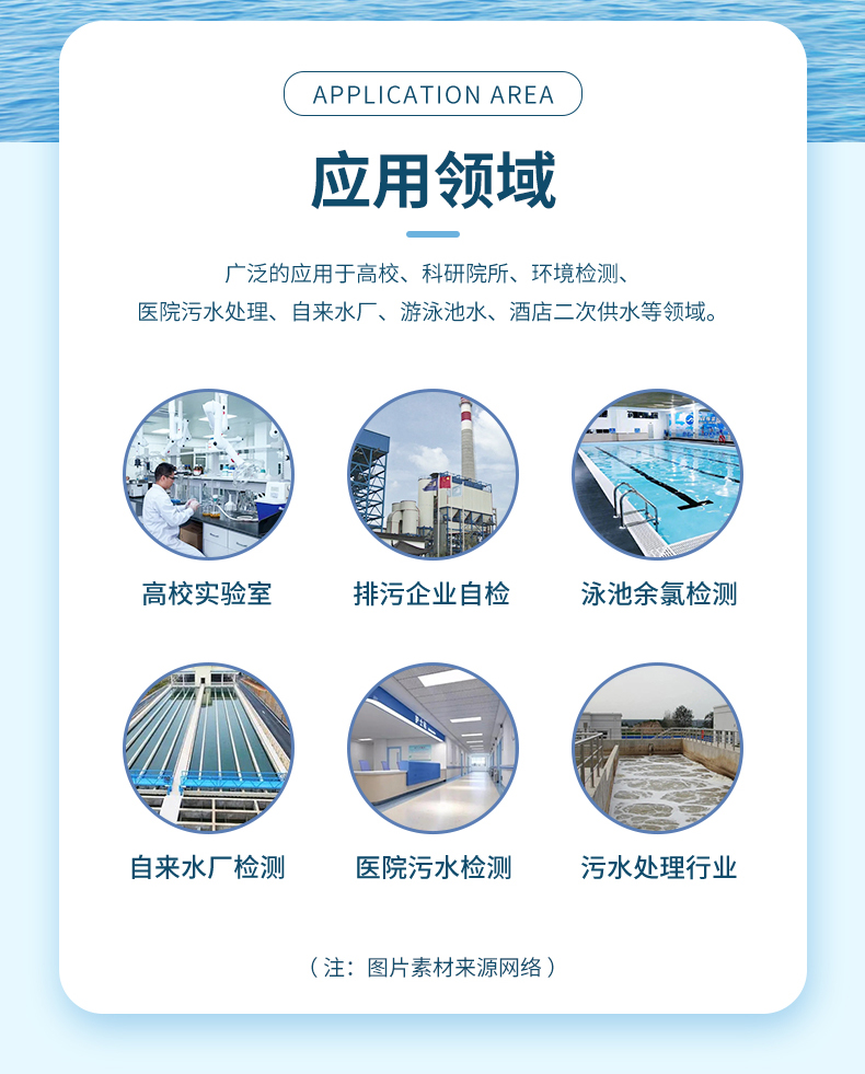 廣泛的應(yīng)用于高校、科研院所、環(huán)境檢測(cè)、醫(yī)院污水處理、自來水廠、游泳池水、酒店二次供水等領(lǐng)域