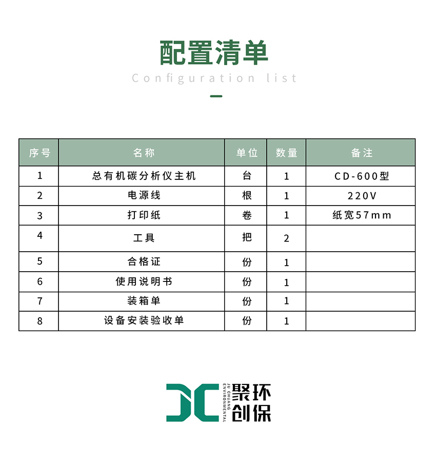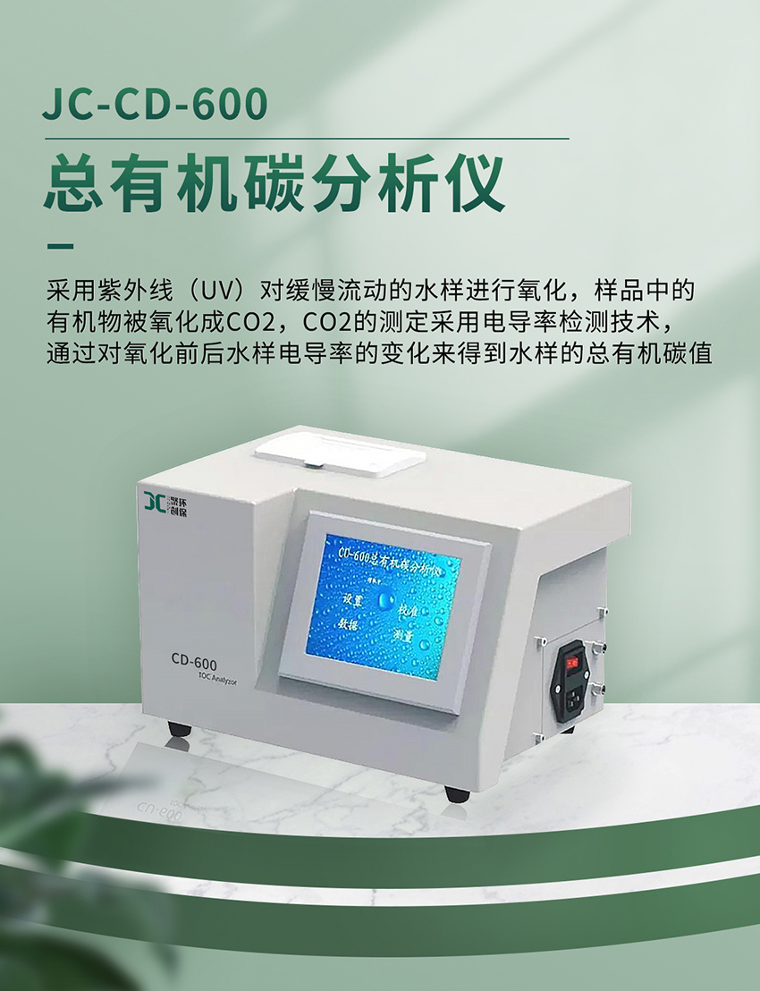 1、產品概況:JC-CD-600型總有機碳分析儀是自主研發生產的用于測定水樣中總有機碳 濃度的分析儀器,可以檢測TOC濃度從0.1μg/L~1500.0μg/L的水樣,具有高靈敏度和精確度,以及好的穩定性。 本分析儀廣泛的滿足客戶的要求,軟件操作便捷,快速的進行樣品分析、分析儀校準和檢驗。