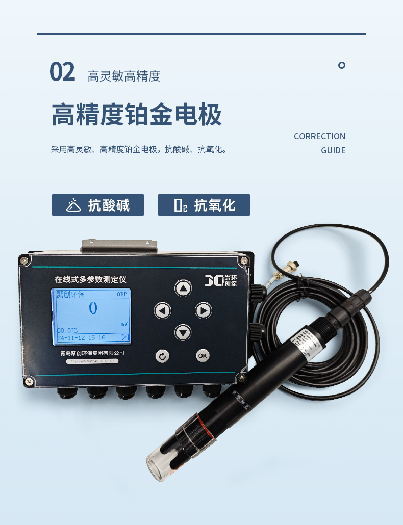 聚創(chuàng)JC-ORP9000系列在線式ORP計(jì)是我公司自主研發(fā)的一款測量溶液氧化還原電位的儀器,可用來實(shí)時監(jiān)測溶液中的ORP及水溫。儀器采用高純度鉑金制成的ORP復(fù)合電極,具有極強(qiáng)的抗酸堿能力和抗氧化能力,測量精度高、響應(yīng)快、穩(wěn)定性好,電極可根據(jù)溫度自動補(bǔ)償。儀器適用于含氰、含鉻廢水等氧化還原電位的在線監(jiān)測。儀器可通過RS485或電流變送遠(yuǎn)傳到監(jiān)控室進(jìn)行記錄保存。