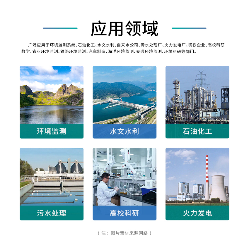 該裝置廣泛應用于環境監測系統、石油化工、水文水利、自來水公司、污水處理廠、火力發電廠、鋼鐵企業、高??蒲薪虒W、農業環境監測、鐵路環境監測、汽車制造、海洋環境監測、交通環境監測、環境科研等部門,是環境監測領域、疾病控制領域、職業衛生監測領域的必備儀器。