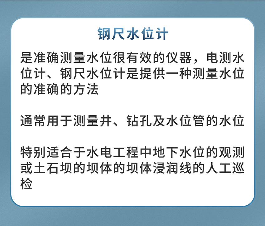鋼尺水位計,由探頭、鋼尺電纜、接收系統和繞線盤等部分組成。