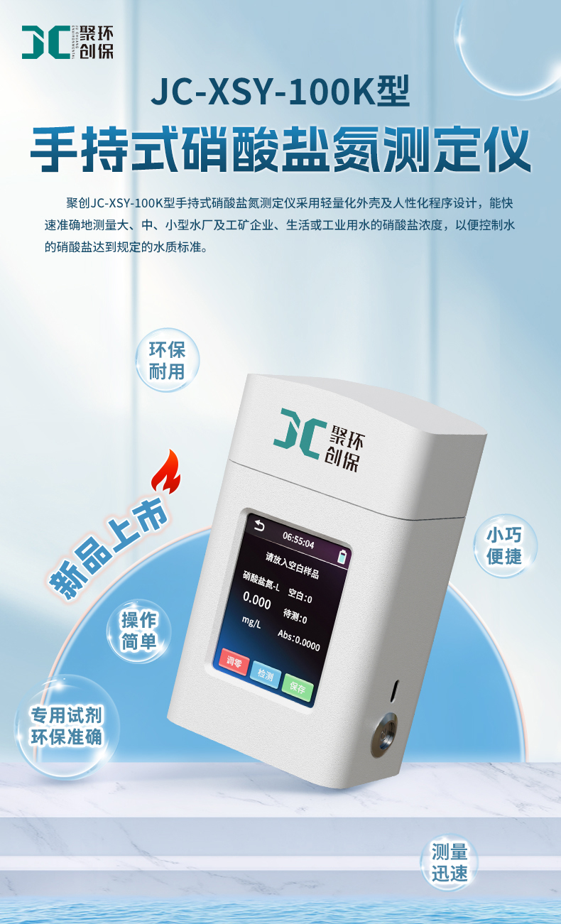 聚創JC-XSY-100K型手持式硝酸鹽氮測定儀采用輕量化外殼及人性化程序設計,能快速準確地測量大、中、小型水廠及工礦企業、生活或工業用水的硝酸鹽濃度,以便控制水的硝酸鹽達到規定的水質標準。