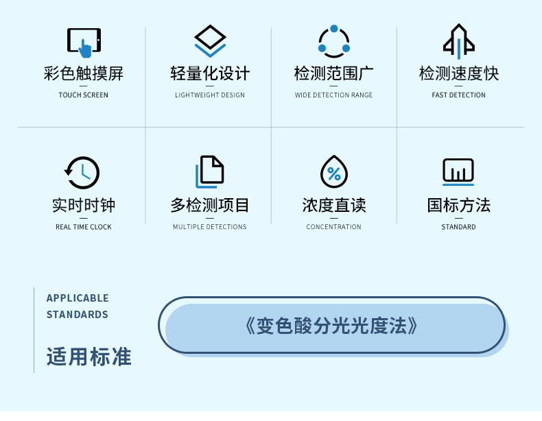9.標配曲線:每種檢測參數標配一條出廠校準曲線;