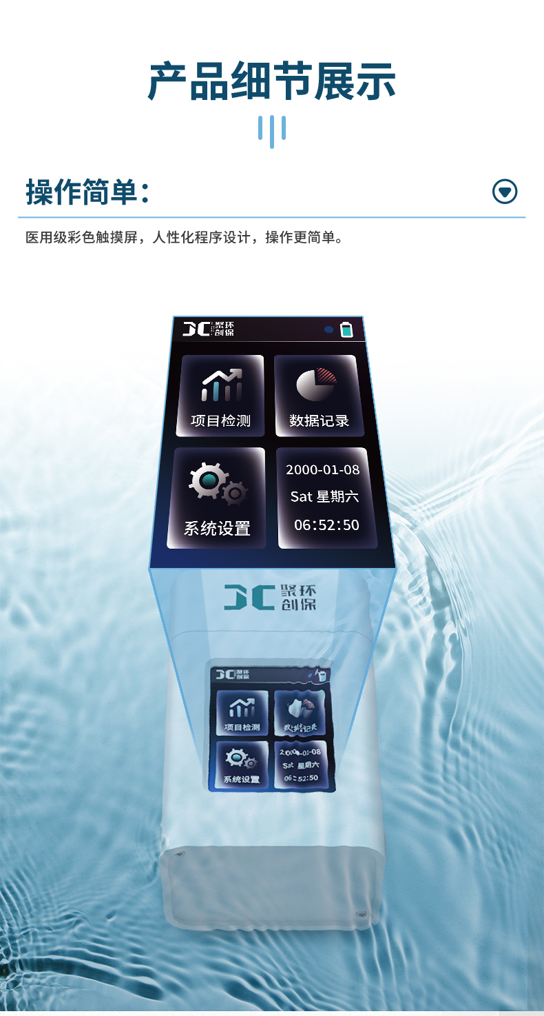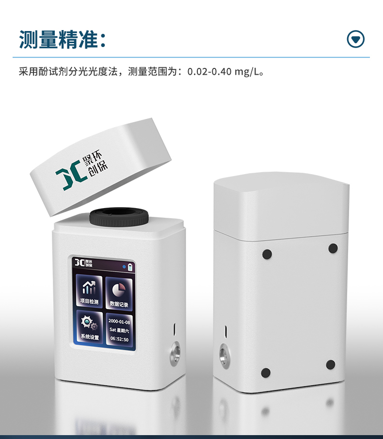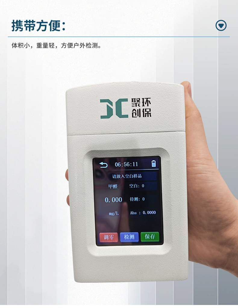 聚創JC-JQ-100K型手持式甲醛測定儀采用輕量化外殼及人性化程序設計,適用于生活飲用水及其他水源水中甲醛的檢測,以便控制水的甲醛達到規定的水質標準。