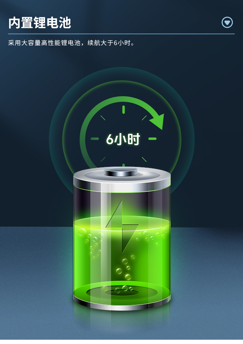 2.手持輕量化設計,充電時間小于續航時間6小時以上。