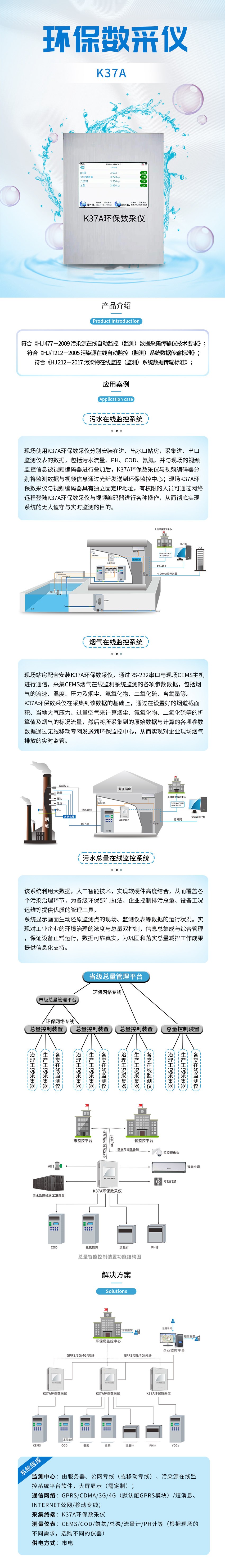 K37A 環保數采儀,是新一代環境監測、污染源監控專用數采儀,符合新一代國標通信標準,支持《污染物在線自動監控(監測)系統數據傳輸標準》(HJ 212-2017、HJ/T 212-2005);產品按照工業級標準設計,針對環境監測的各種要求做了專門的優化,并配備豐富齊全的通信接口,支持局域網、GPRS、CDMA、4G等,滿足不同現場環境下對遠程通信的要求。 K37A 環保數采儀充分利用人工智能物聯網、大數據云計算等新一代信息技術,建立動態的監控模型,實時監控污染源在線監測系統狀態,實現智能感知、智能預警、智能處理、智能運維,降低企業運維成本,大幅提高企業運維和政府監管效率。