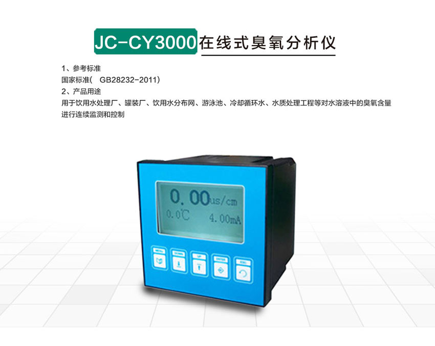 用于飲用水處理廠、罐裝廠、飲用水分布網、游泳池、冷卻循環水、水質處理工程等對水溶液中的臭氧含量進行連續監測和控制。