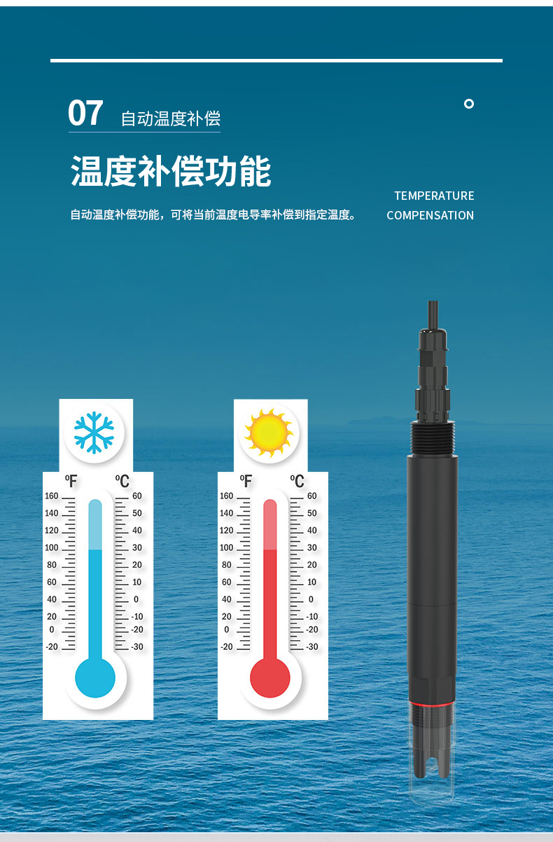 溶液電導率的測量值是根據電極呈現的電阻大小和電極本身的常數K計算并通過溫度補償得出
