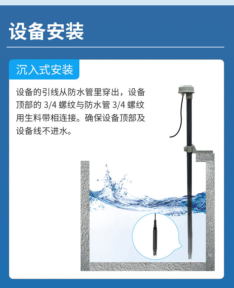 3.電極電氣接口:上下螺紋均為NPT3/4螺紋,方便管道式安裝、沉入式安裝;