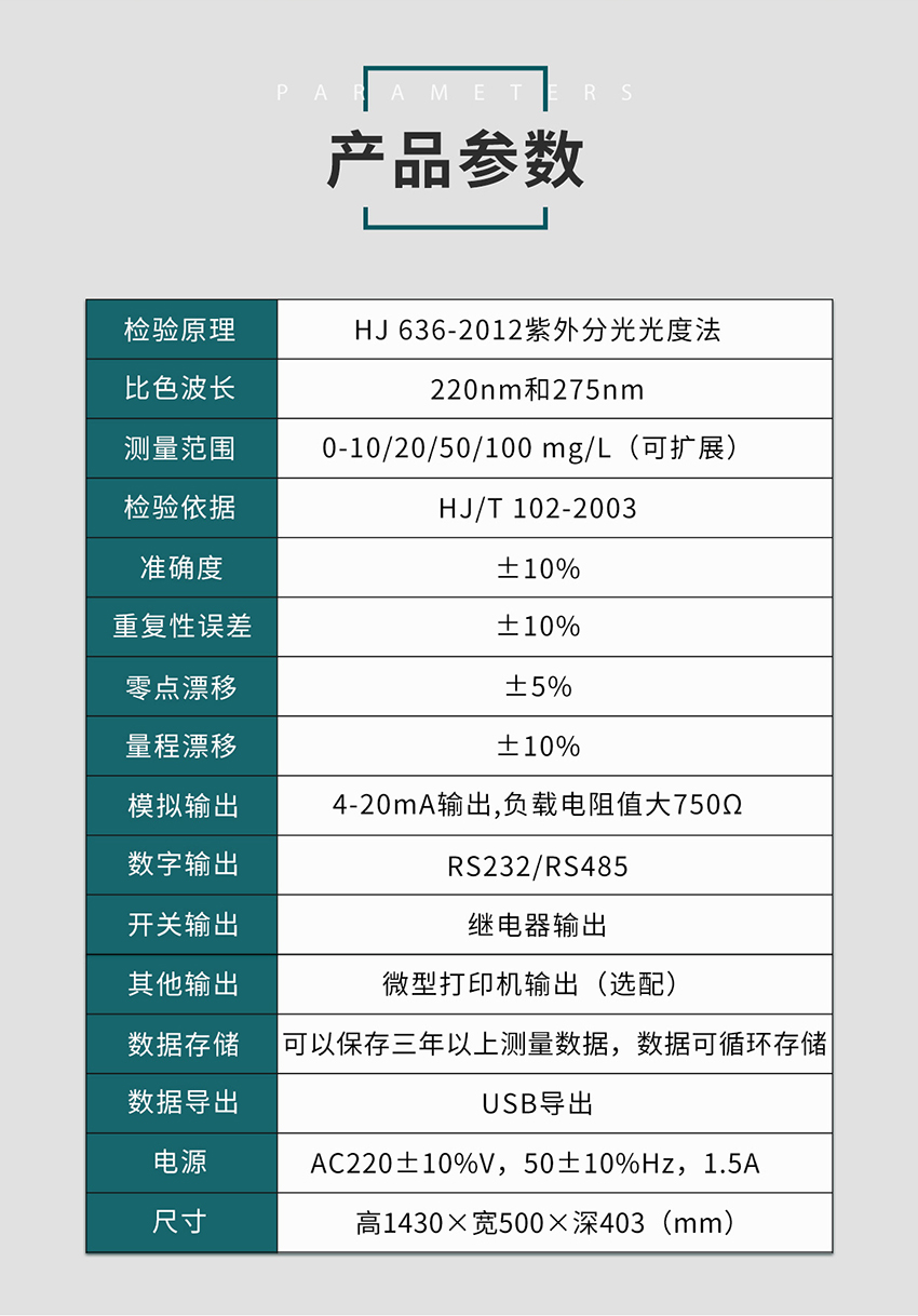 產品概述:總氮(TN)是指水中可溶性及懸浮顆粒中的含氮量,包括水中亞硝酸氮、硝酸鹽氮、無機銨鹽、溶解態(tài)氨以及大部分有機含氮化合物中的氮。湖泊、水庫中含有有超標的氮、磷物質時,造成浮游植物繁殖旺盛,出現富營養(yǎng)化狀態(tài)。因此,總氮引起的富營養(yǎng)化已經成為各國十分重視的重大環(huán)境問題,總氮也成為控制水質質量的重要指標之一。