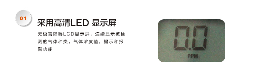 7、 顯 示:無語言障礙LCD顯示屏,連續顯示被檢測的氣體種類,氣體濃度值,提示和報警功能