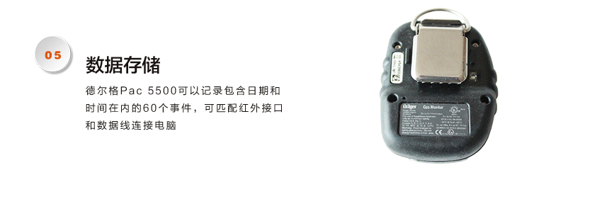 德爾格Pac 5500可以記錄包含日期和時間在內的60個事件,可匹配紅外接口和數據線連接電腦。典型事件例如開/關機,氣體和電池報警,模式錯誤,配置更改,新鮮空氣標定和功能測試都可以被下載,打印和存儲。