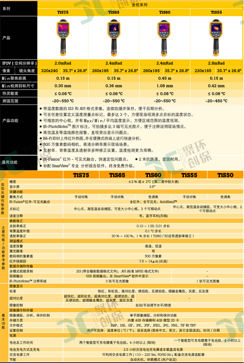 4、溫度測量范圍 -20 °C 至 550 °C(–4 °F 至 1022 °F)