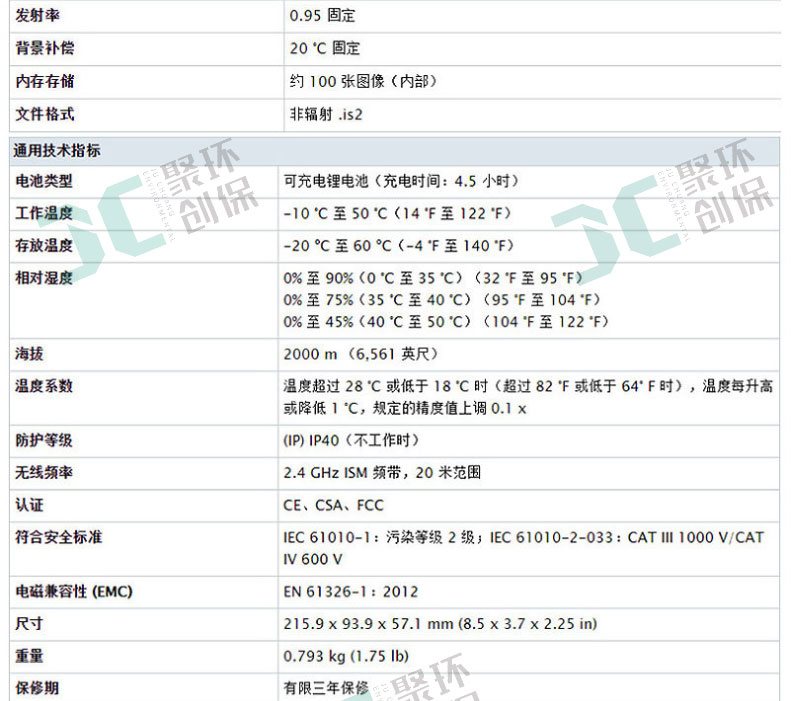 -10 °C 至 200 °C(14 °F 至 392 °F)精度:±5 °C (9 °F) 或(測試結果的 ±5%)