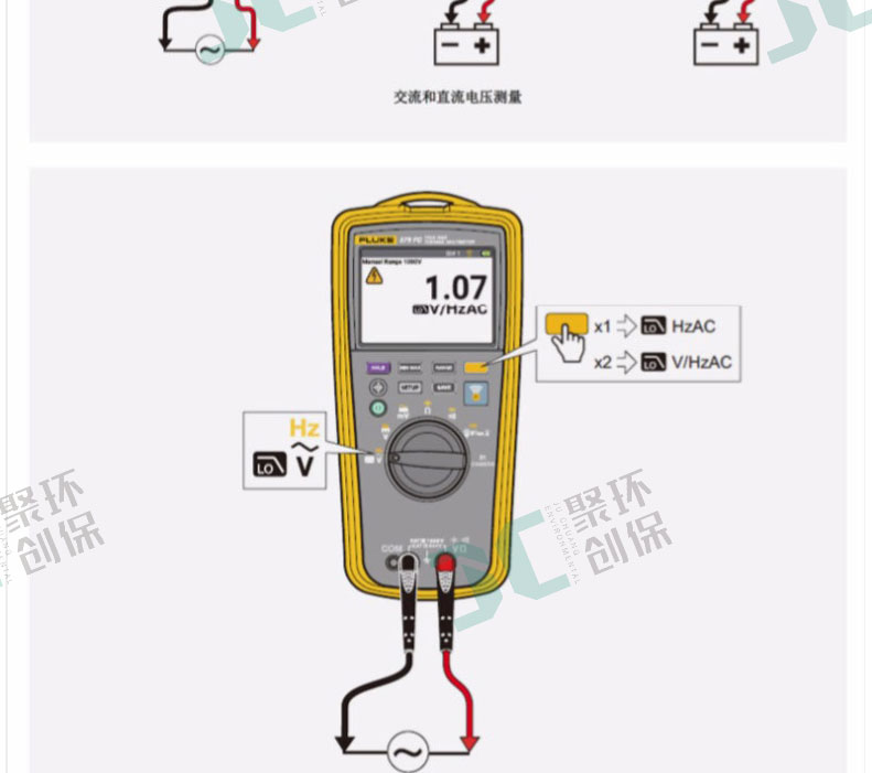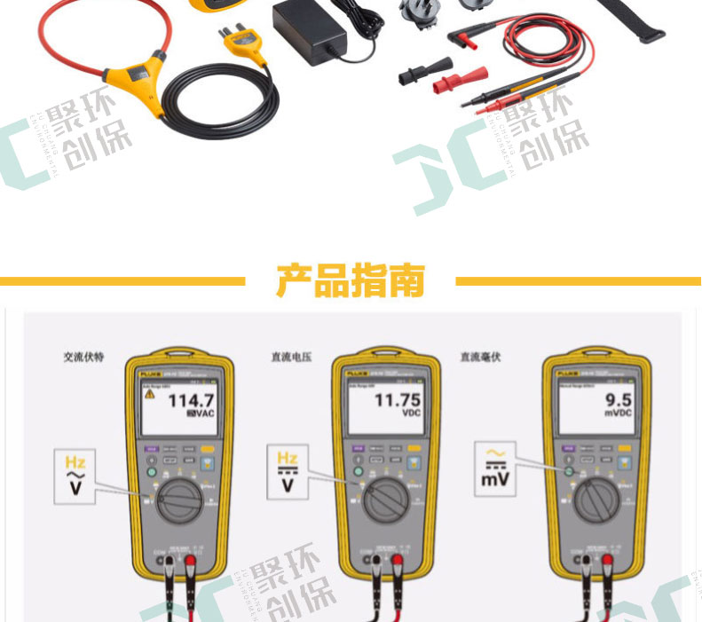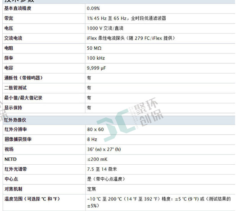 2、共有 15 種測量功能,其中包括:交流電壓(有低通濾波器)、直流電壓、電阻、導通性、電容、二極管檢測、小值/大值/平均值、交流電流(通過 iFlex柔性電流探頭)、頻率;