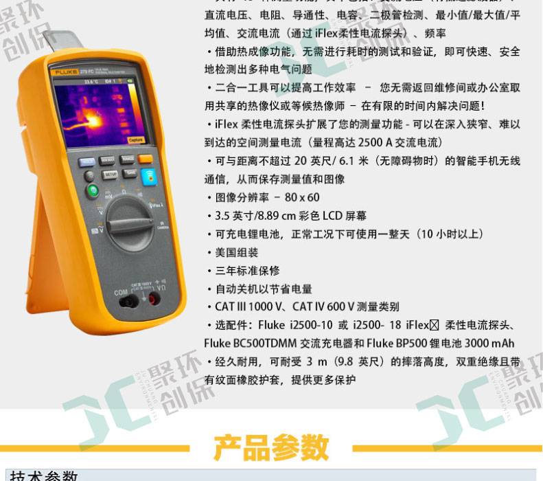 產品名稱:Fluke 279 FC 真有效值熱成像萬用表