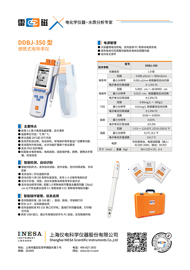 產(chǎn)品名稱:便攜式電導率儀 DDBJ-350