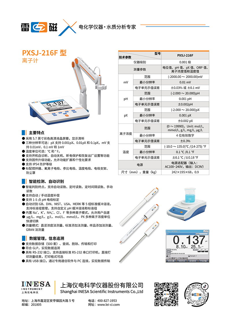 產品名稱:臺式離子計 PXSJ-216F (非醫用)