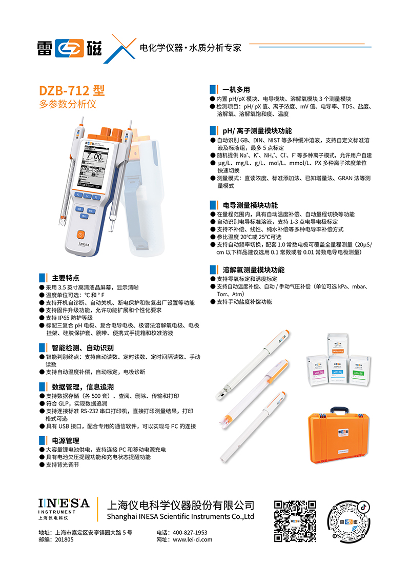 產品名稱:DZB-712便攜式原位水質檢測儀