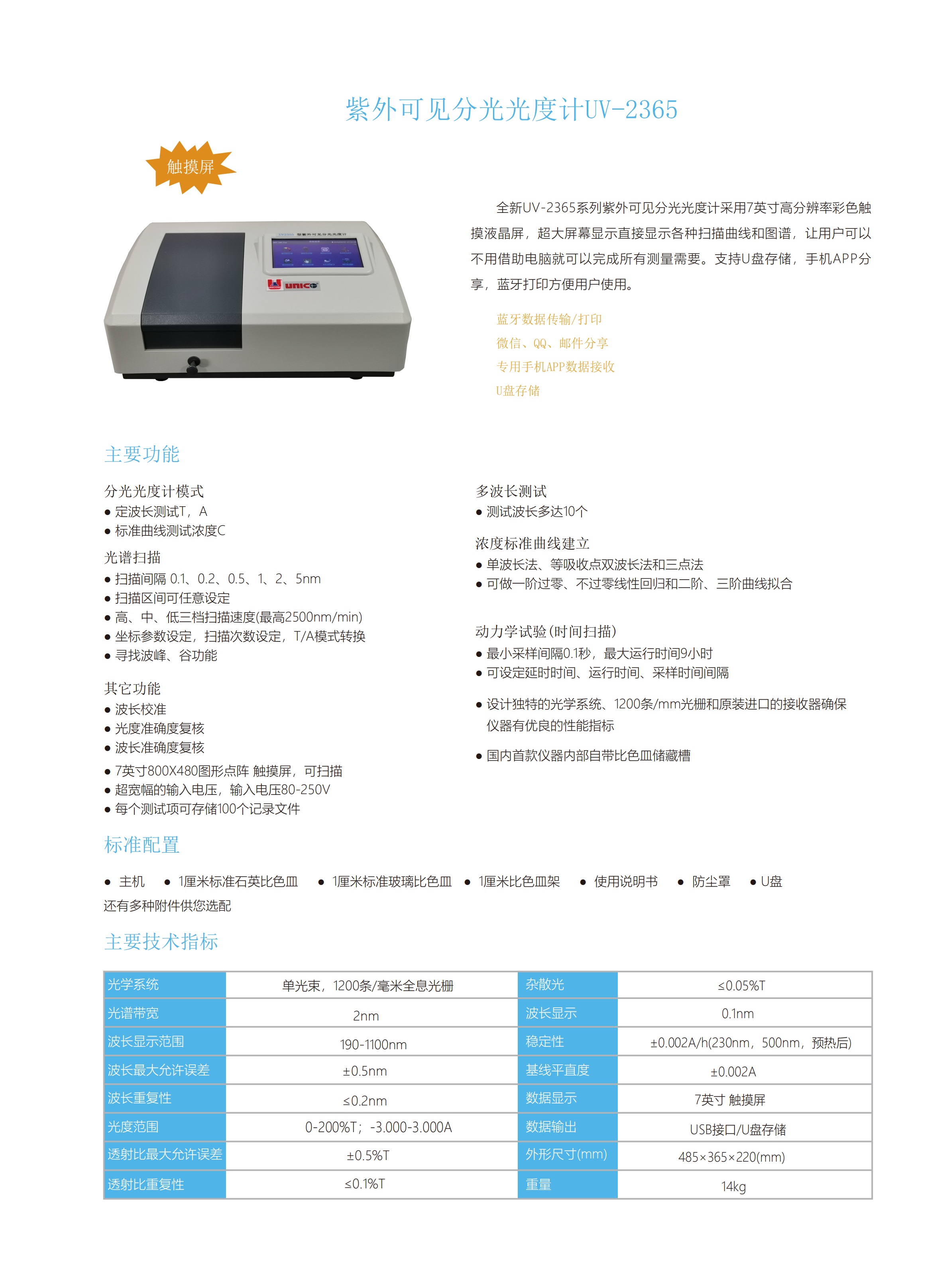 UV-2800A大屏幕掃描型單光束紫外可見分光光度計