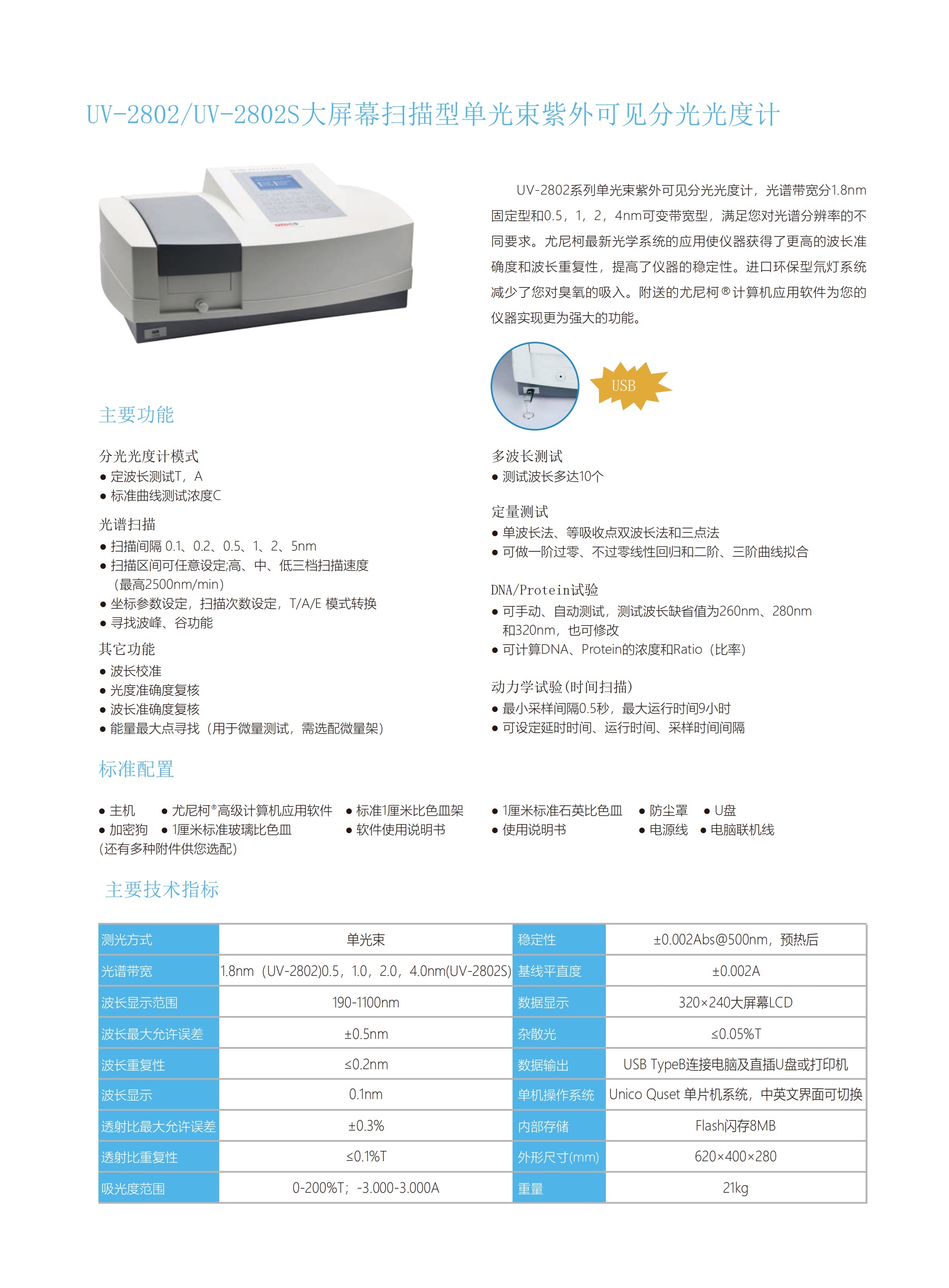 • UV-3802/UV-3802S大屏幕掃描型準雙光束紫外可見分光光度計