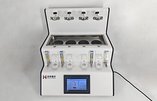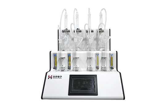 采用垂直加酸、氮氣吹脫、酸化吸收一體化設計。鹽酸入口、氣體進口、樣品出口三口一體但又相互區分,操作過程互不干擾。