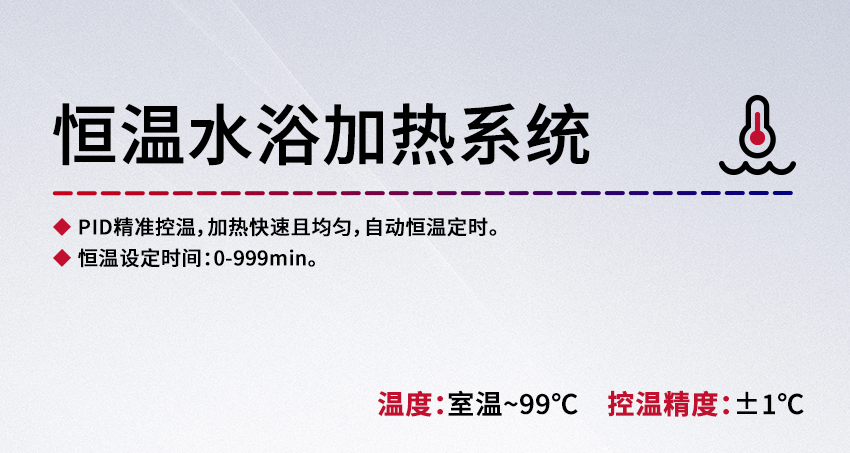 采用智能PID精準控溫技術,加熱迅速且均勻。具備自動恒溫計時功能,加熱溫度可由用戶手動設定。