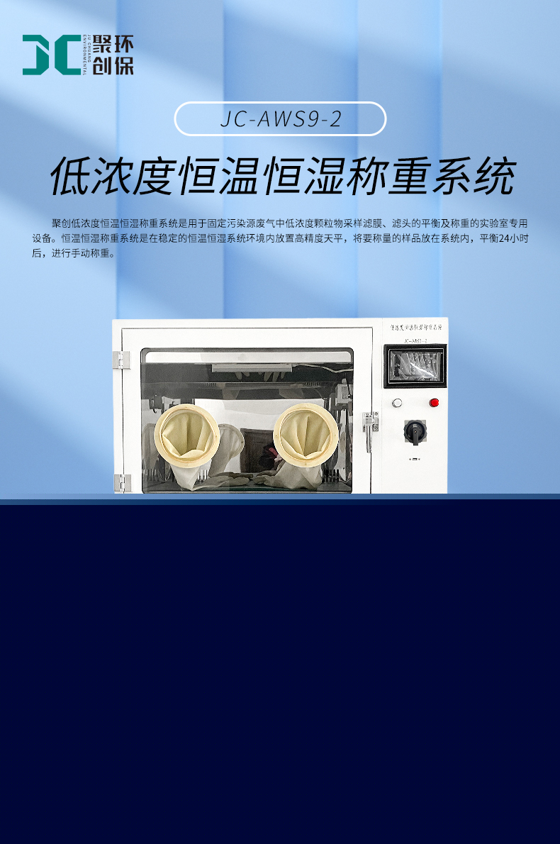 為滿足環境行業標準HJ836-2017《固定污染源廢氣 低濃度顆粒物的測定重量法》中關于采樣后稱量條件的要求,聚創專門研發了這款低濃度恒溫恒濕稱重系統。該系統是用于固定污染源廢氣中低濃度顆粒物采樣濾膜、濾頭的平衡及稱重的實驗室專用設備。該系統可高精度控制箱體內部溫度、濕度,使稱重實驗結果更加精確。恒溫恒濕稱重系統是在穩定的恒溫恒濕系統環境內放置高精度天平,將要稱重的樣品放在系統內,平衡24小時后,進行手動稱重。該系統克服了實驗室環境溫濕度變化對稱量結果造成影響,提高了稱量的準確性,該產品也用于其他對稱量環境要求較高的樣品稱量。
