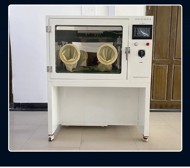 8.稱量室采用一體化結構設計,密封性好,箱體上有兩個操作入口,并用乳膠長手套進行隔離,方便人工操作實驗。
