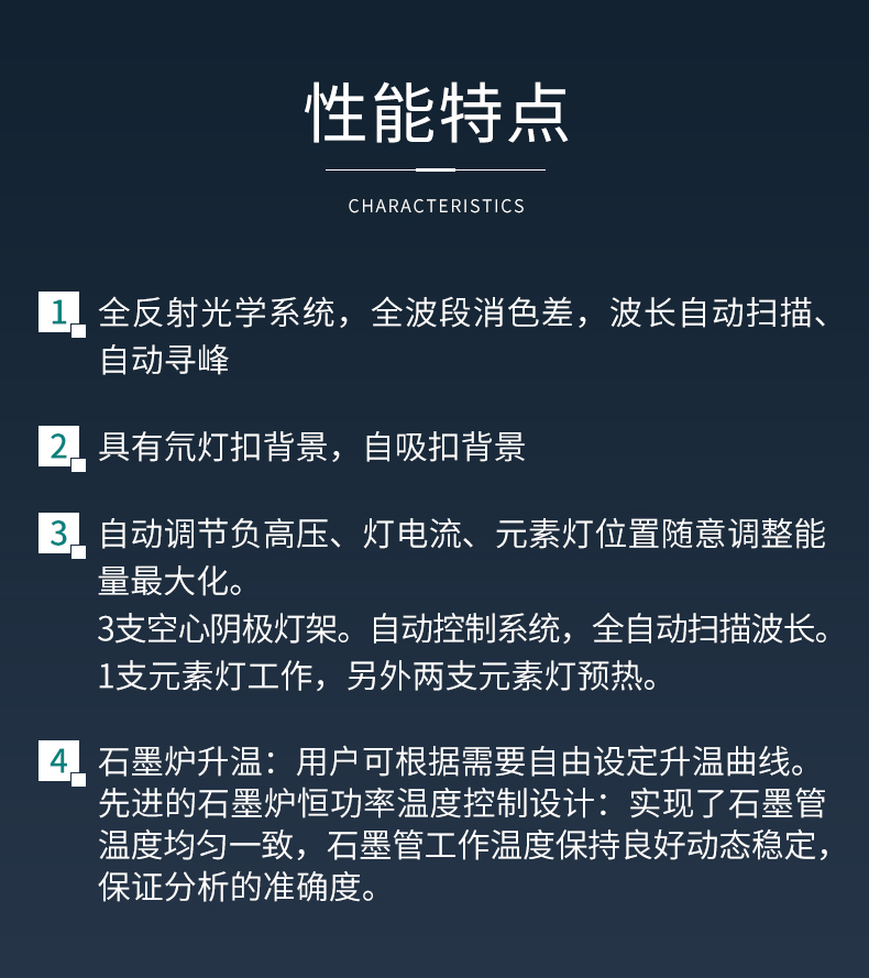 先進的石墨爐恒功率溫度控制設計:實現了石墨管溫度均勻一致,石墨管工作溫度保持良好動態穩定,保證分析的準確度。