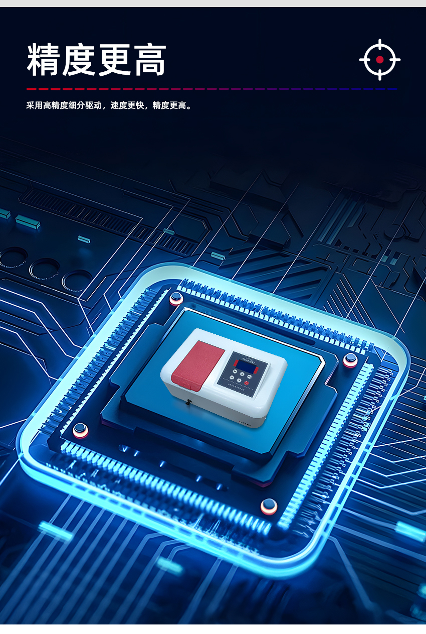 創(chuàng)新:先進的自動調(diào)節(jié)0%T和100%T,測試數(shù)據(jù)更準確;波長自動調(diào)節(jié),無手動調(diào)節(jié)視角誤差,最小波長間距0.5nm;寬大的樣品室,可以容納100mm長光程比色皿;多供電系統(tǒng)選擇,80-250V交流電源、鋰電池電源、車載電源。