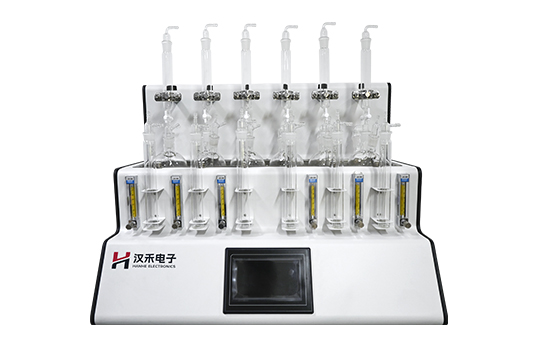 采用垂直加酸、氮氣吹脫、酸化吸收一體化設計。鹽酸入口、氣體進口、樣品出口三口一體但又相互區分,操作過程互不干擾。