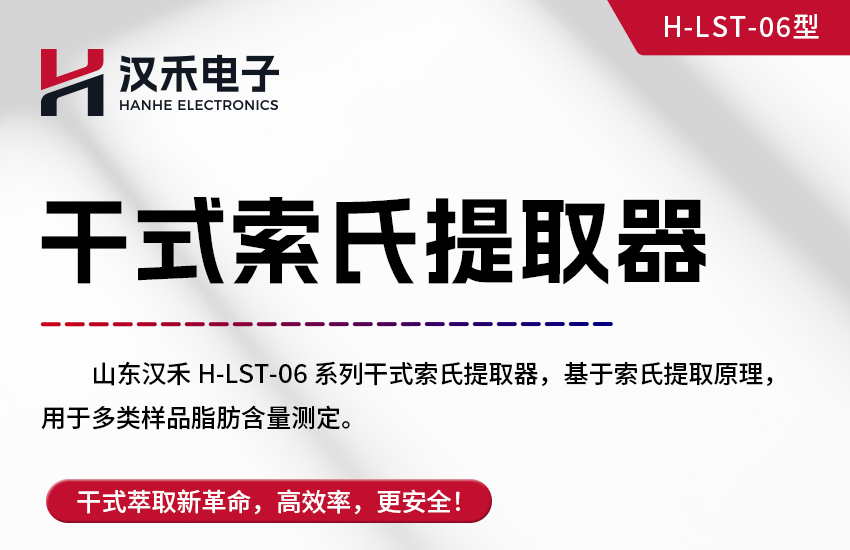 H-LST-06干式索氏提取器根據索氏提取原理、根據重量測定法來測定脂肪含量。即在有機溶劑下溶解脂肪,用抽提法使脂肪從溶劑中分理出來,然后烘干、稱量、計算出脂肪含量。本儀器主要有加熱抽提、溶劑回收和冷卻三大部分組成。操作時可以根據試劑沸點和環境溫度不同而調節加熱溫度,試樣在抽提過程中反復浸泡及抽提、從而達到快速測定目的。