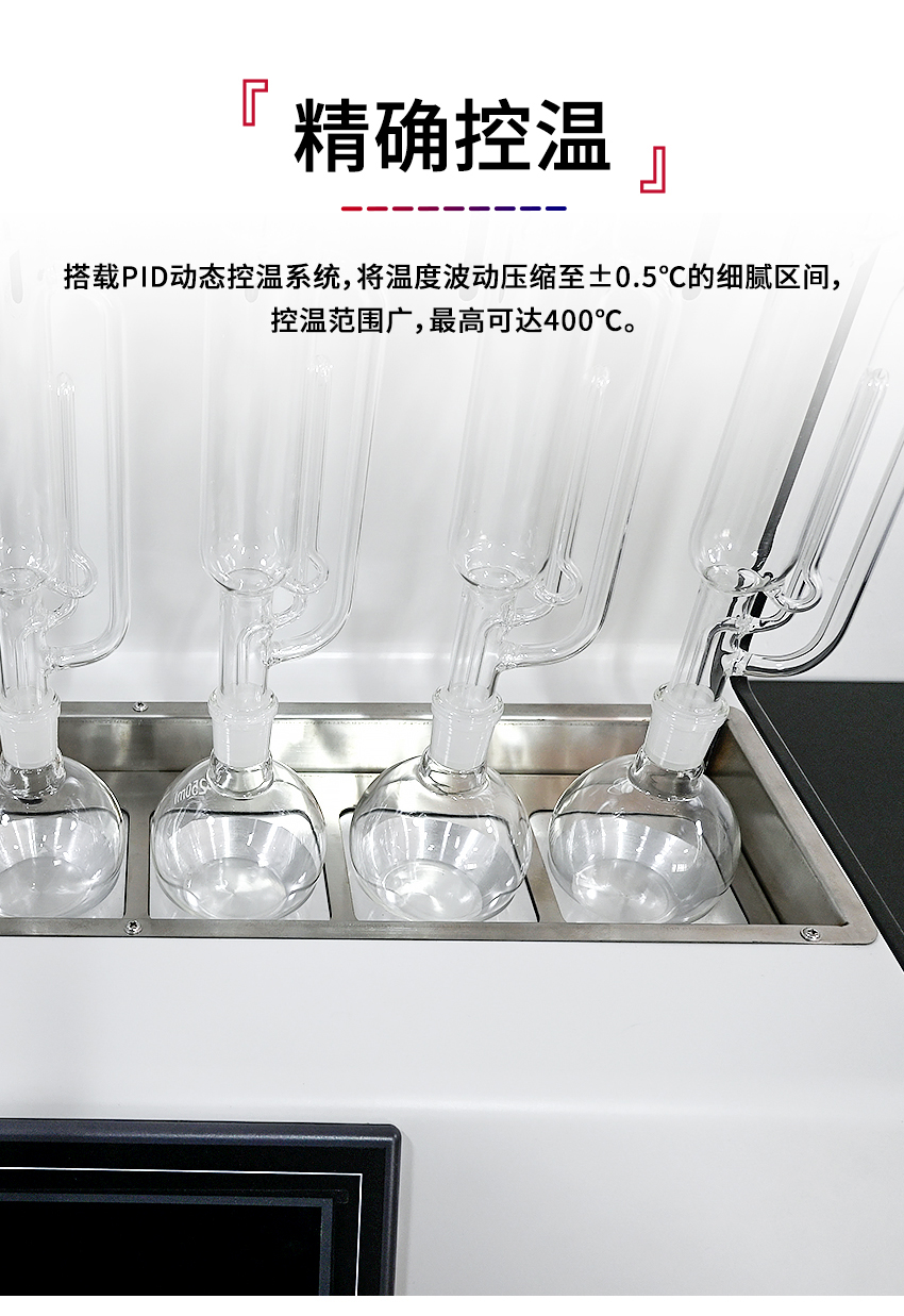 6. 精準控溫:使用專業PID控溫系統,控溫精度高,可達±0.5℃,控溫范圍廣,最高可達400℃,可滿足不同溶劑和樣品的提取需求。