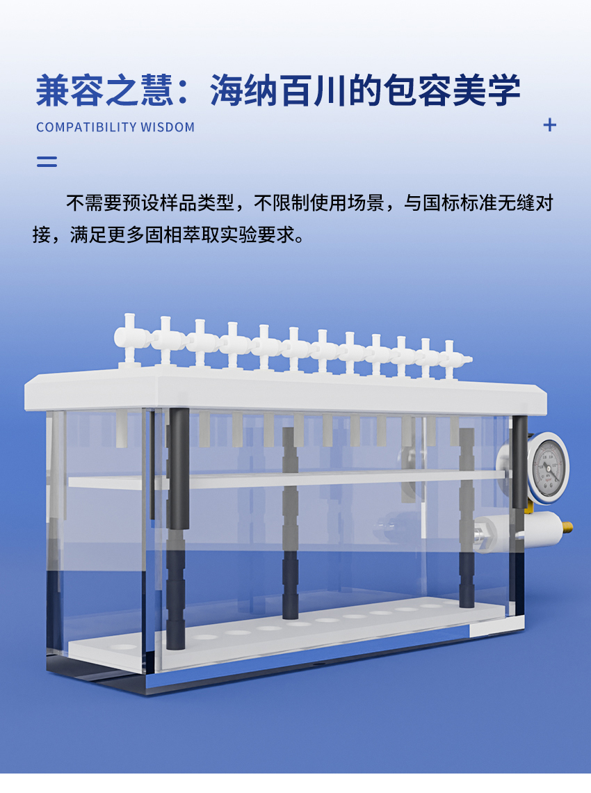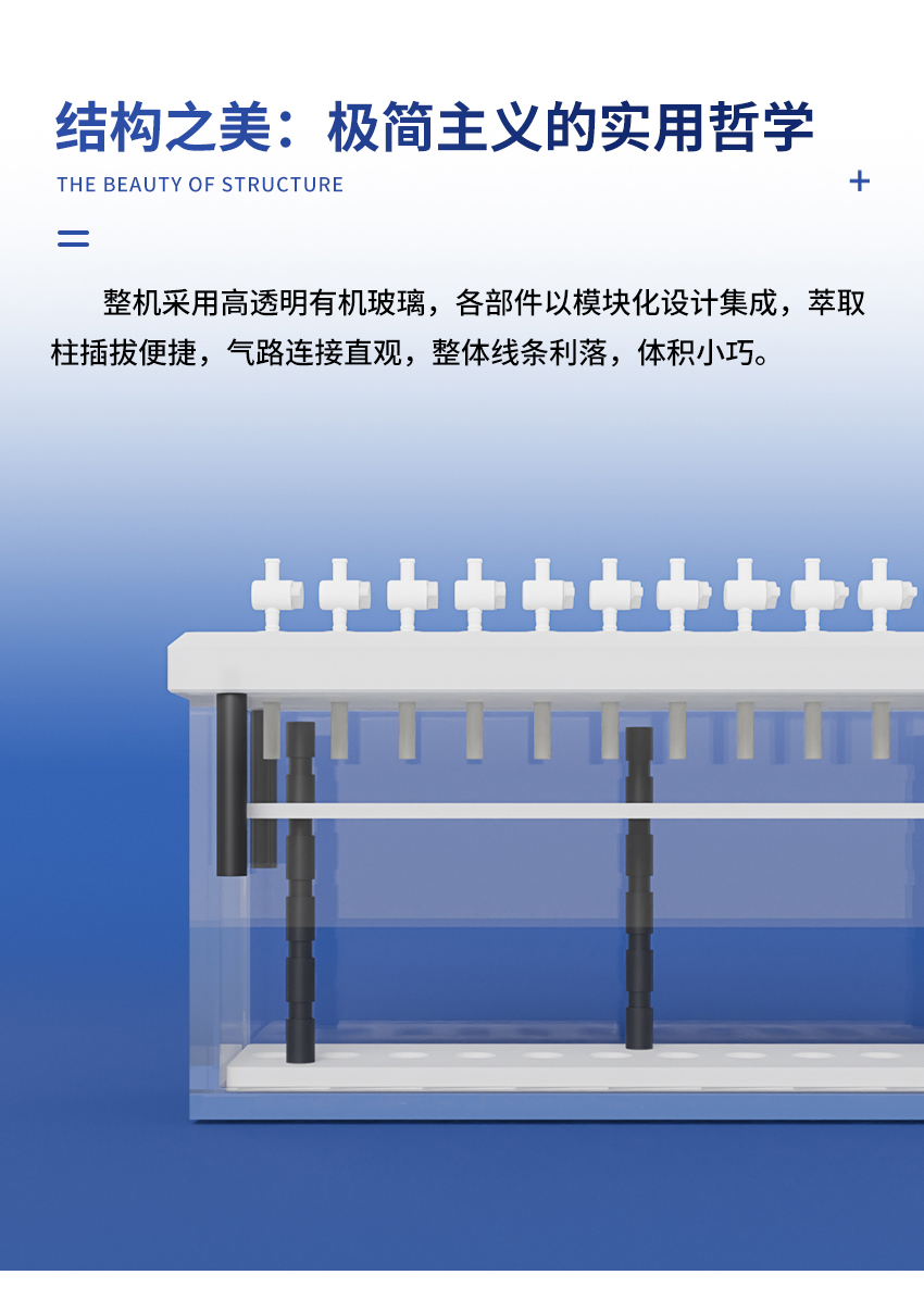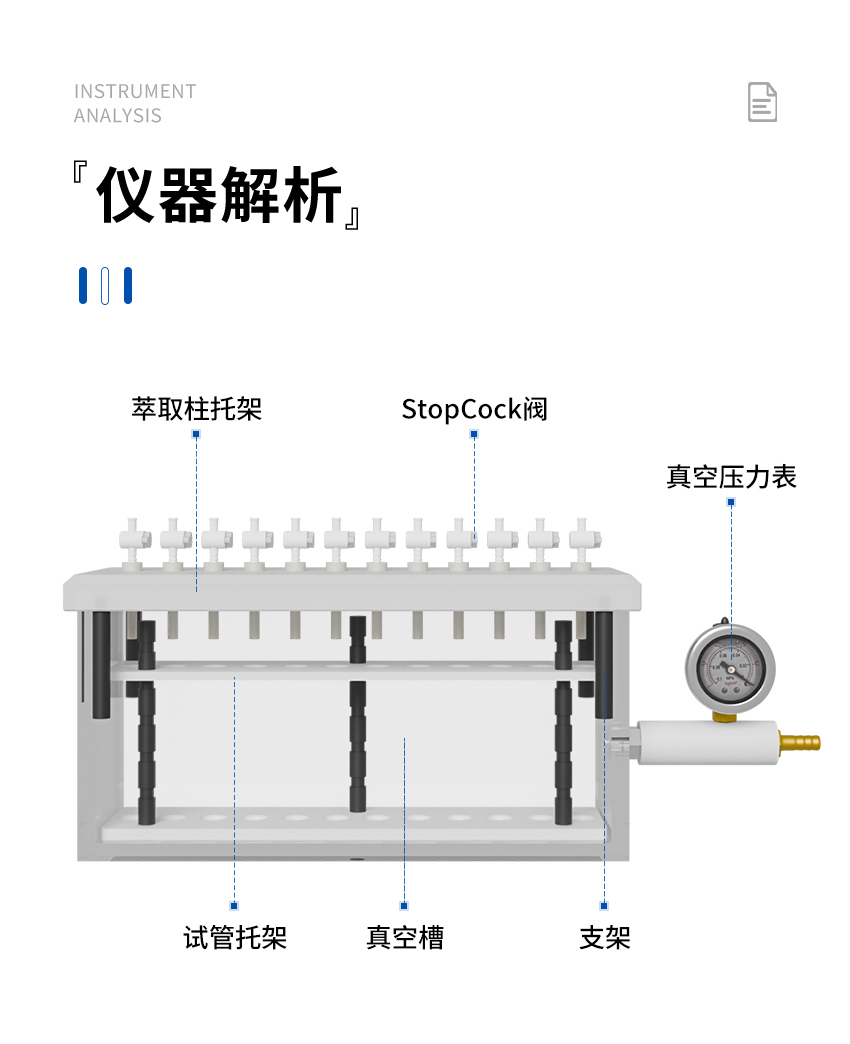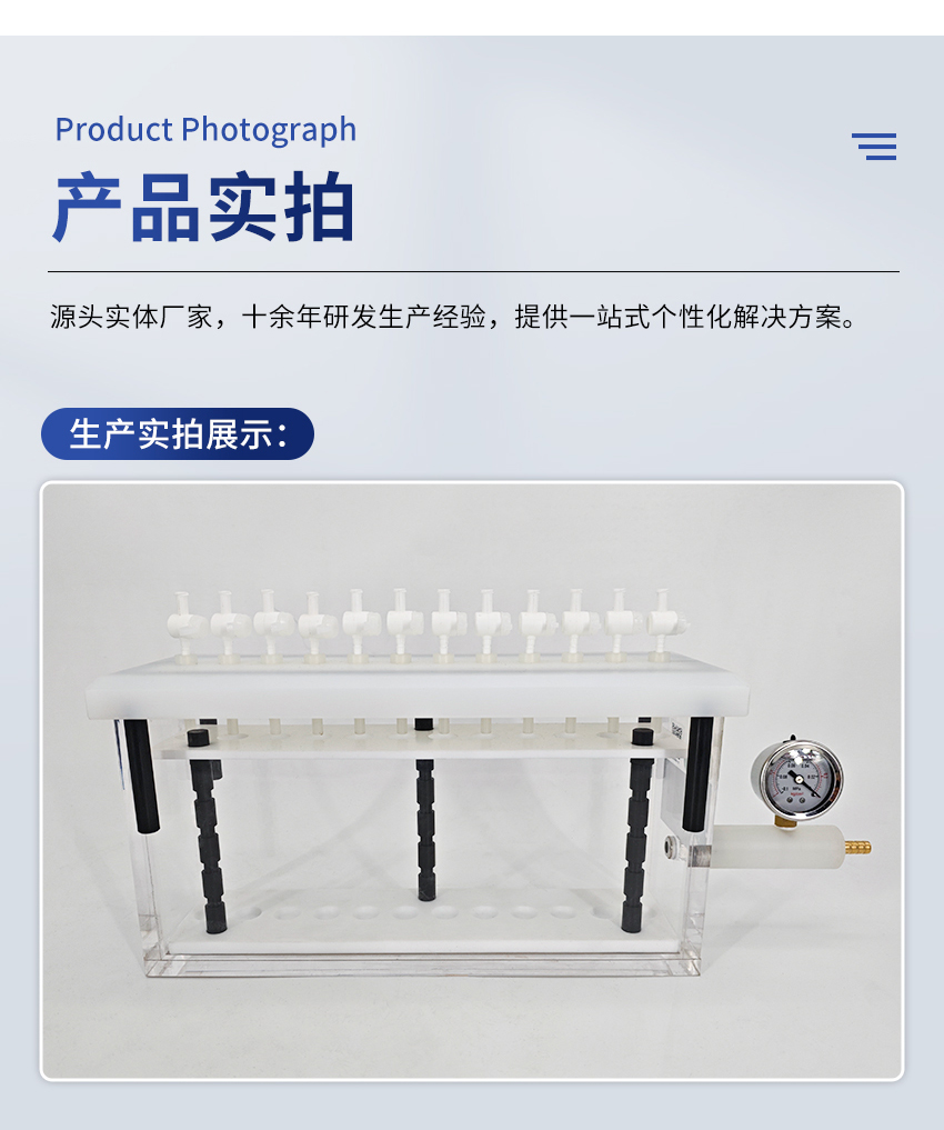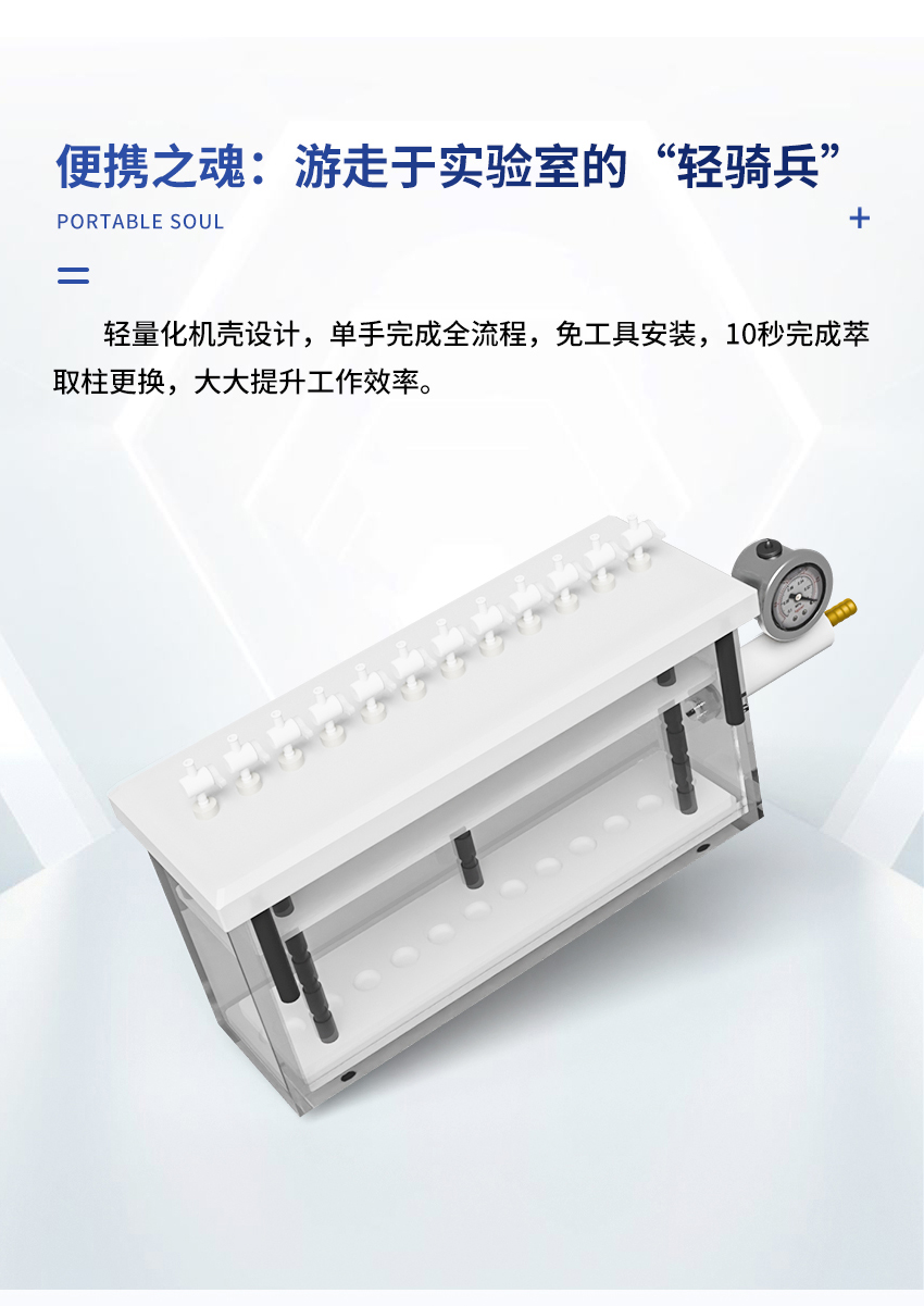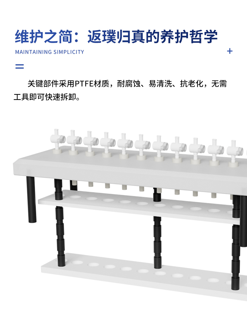 7.固相萃取裝置的內部試管架由聚四氟乙烯制成,故有極高的耐腐蝕性。