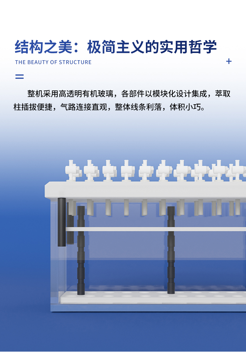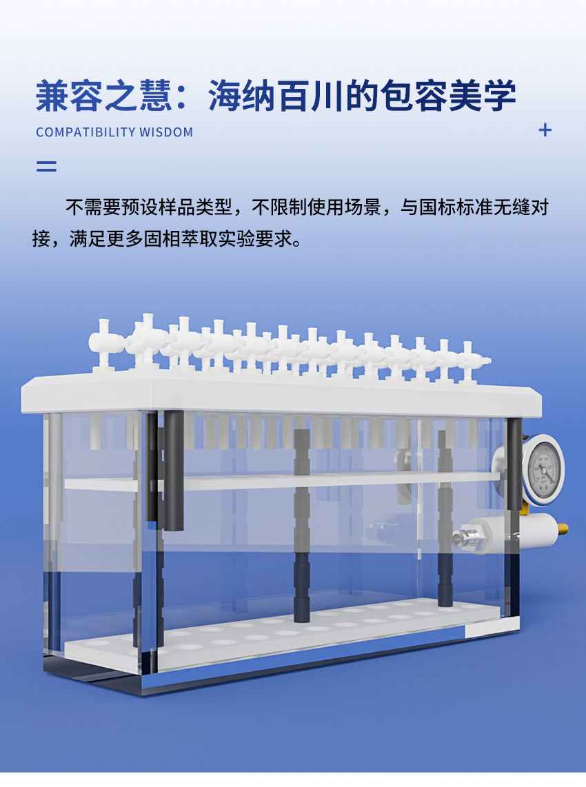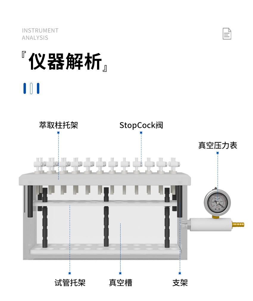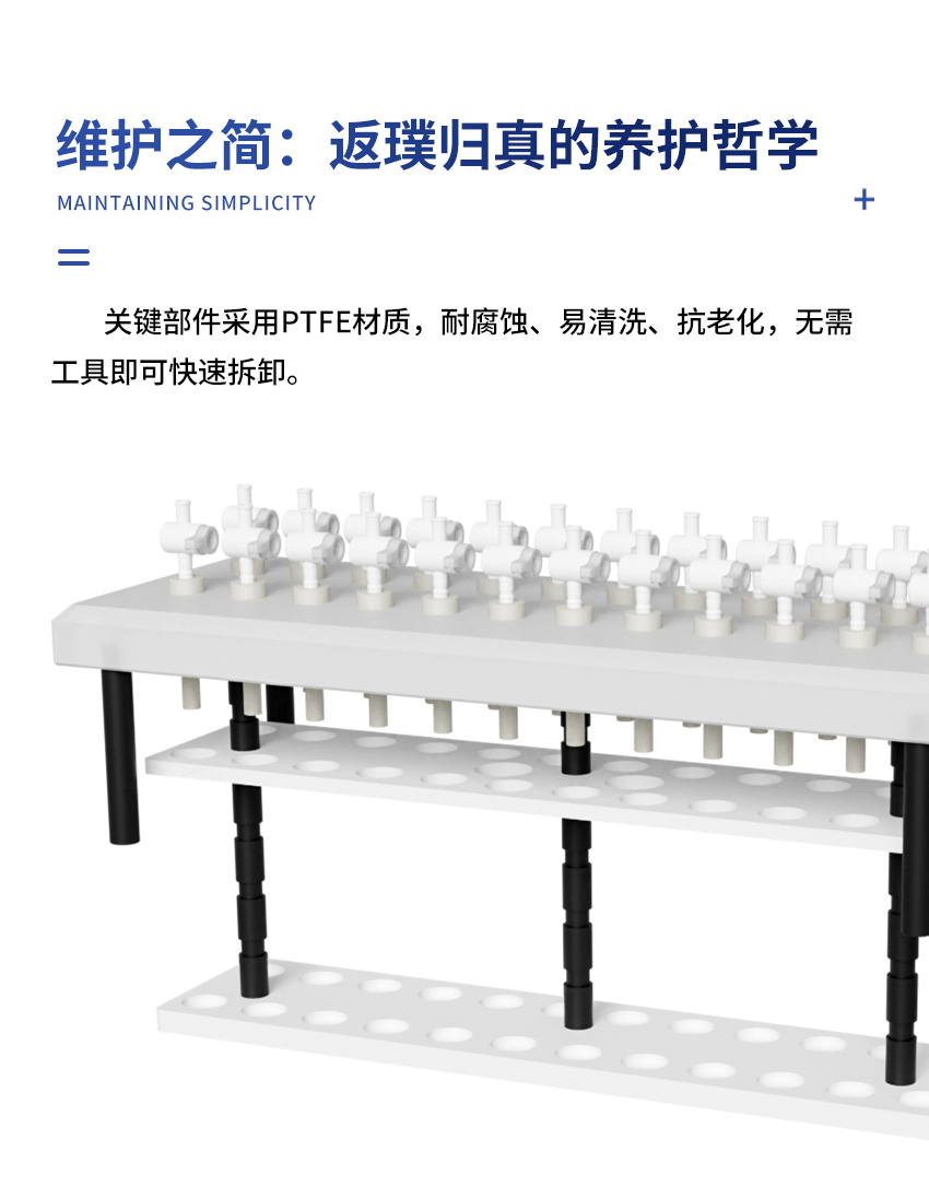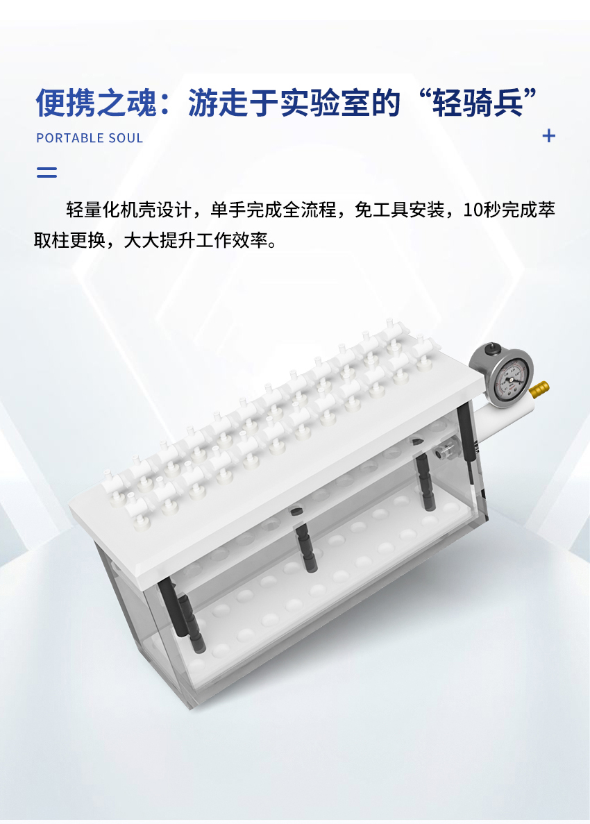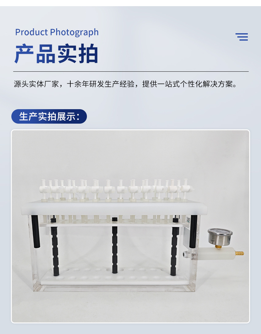 7.固相萃取裝置的內部試管架由聚四氟乙烯制成,故有極高的耐腐蝕性。