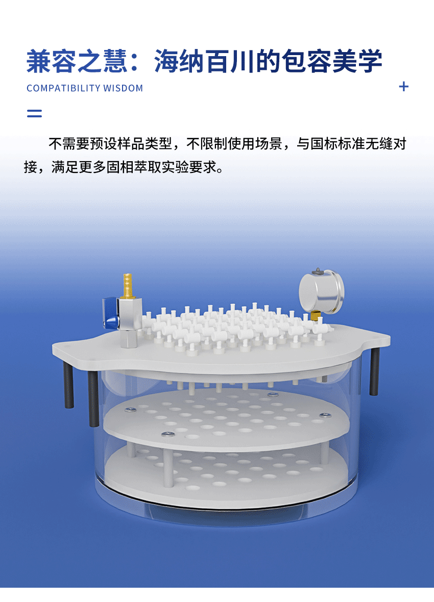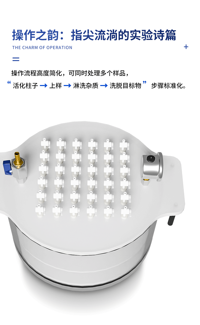 聚創(chuàng) JC - GX - 36S 型固相萃取裝置,基于液固萃取與液相色譜技術(shù)融合發(fā)展而來。該裝置借助固體吸附劑,吸附液體樣品中的目標(biāo)化合物,使其與樣品基體及干擾化合物相分離。隨后,通過洗脫液洗脫或加熱解吸附的方式,實(shí)現(xiàn)目標(biāo)化合物的分離與富集,即達(dá)成樣品的分離、凈化和富集。其目的在于降低樣品基質(zhì)干擾,提升檢測靈敏度,廣泛應(yīng)用于各類食品安全檢測、農(nóng)產(chǎn)品殘留監(jiān)控、醫(yī)藥衛(wèi)生、環(huán)境保護(hù)、商品檢驗(yàn)、自來水及化工生產(chǎn)等實(shí)驗(yàn)室場景。