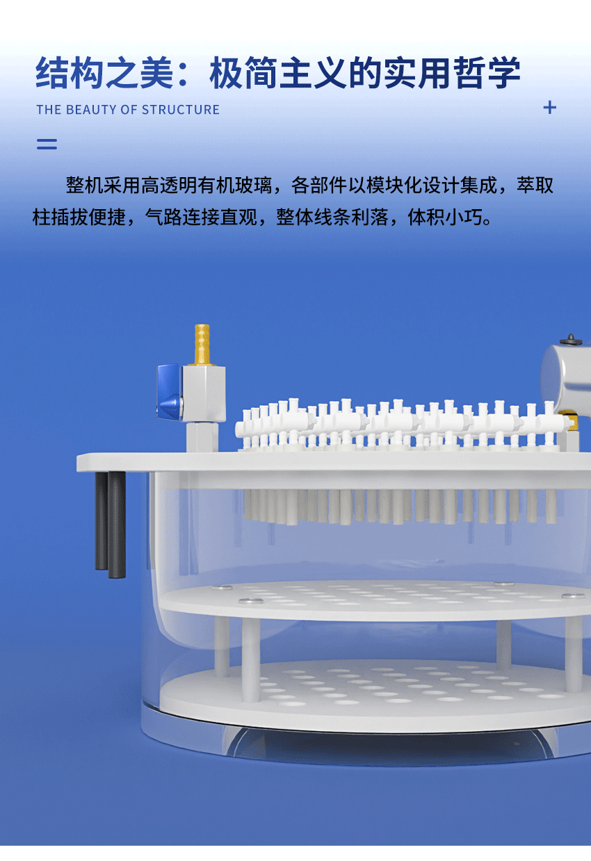 4. 萃取柱呈方形分布,便于開展分組實(shí)驗(yàn),萃取速度均勻,控制與調(diào)整便捷。