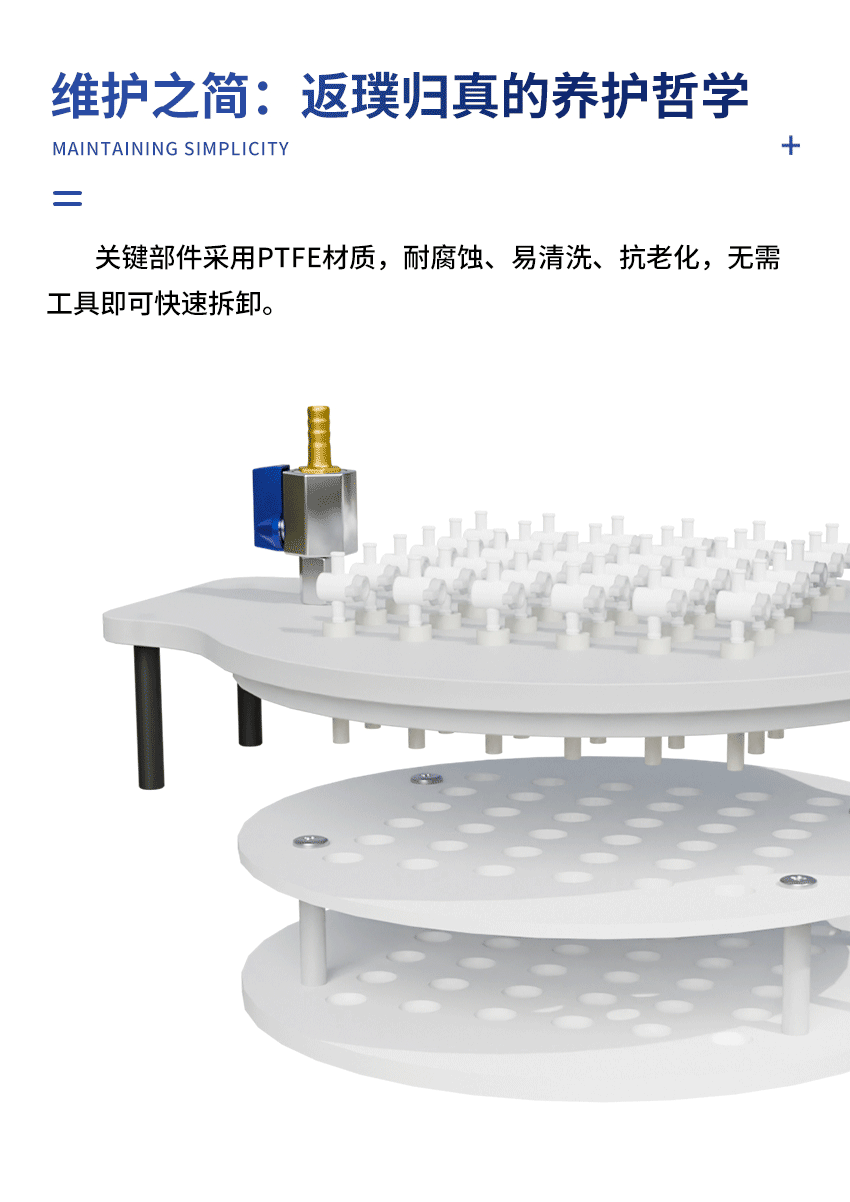 7. 固相萃取裝置的內(nèi)部試管架由聚四氟乙烯制成,因此具有極高的耐腐蝕性。